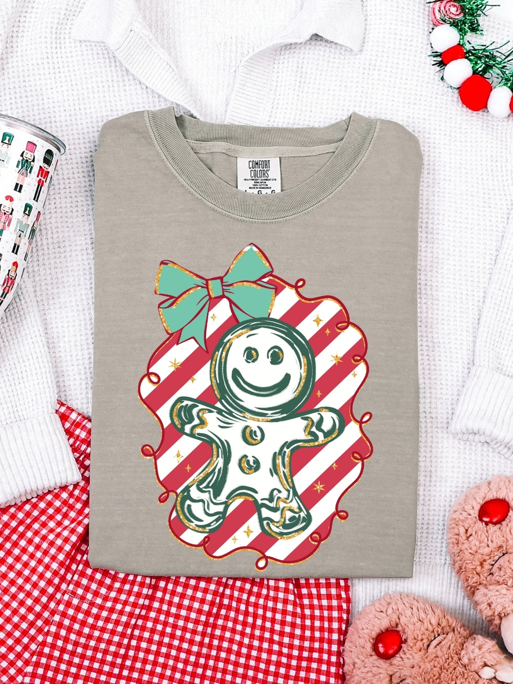 Comfort Colors Preppy Green Bow Gingerbread T-Shirt
