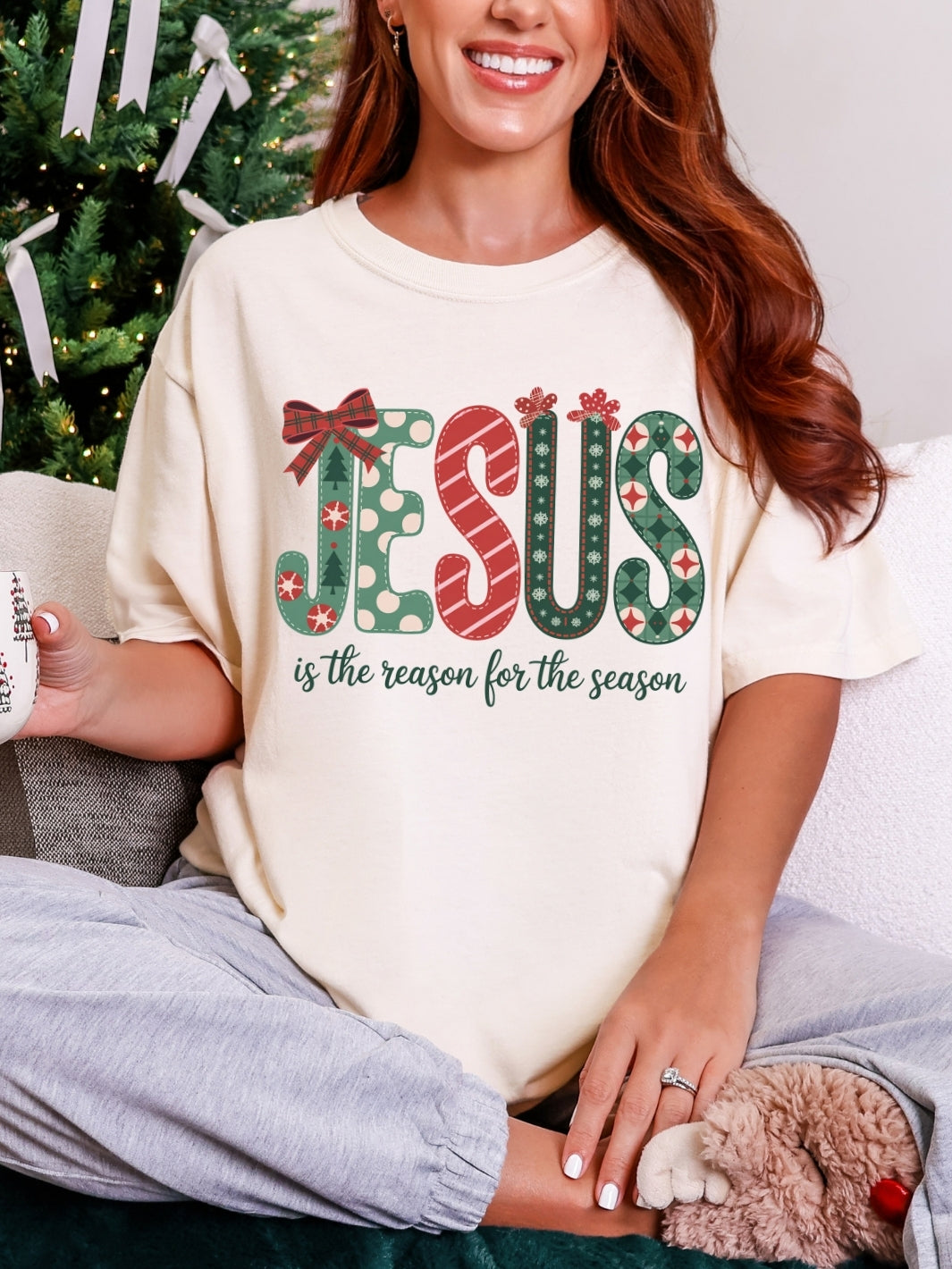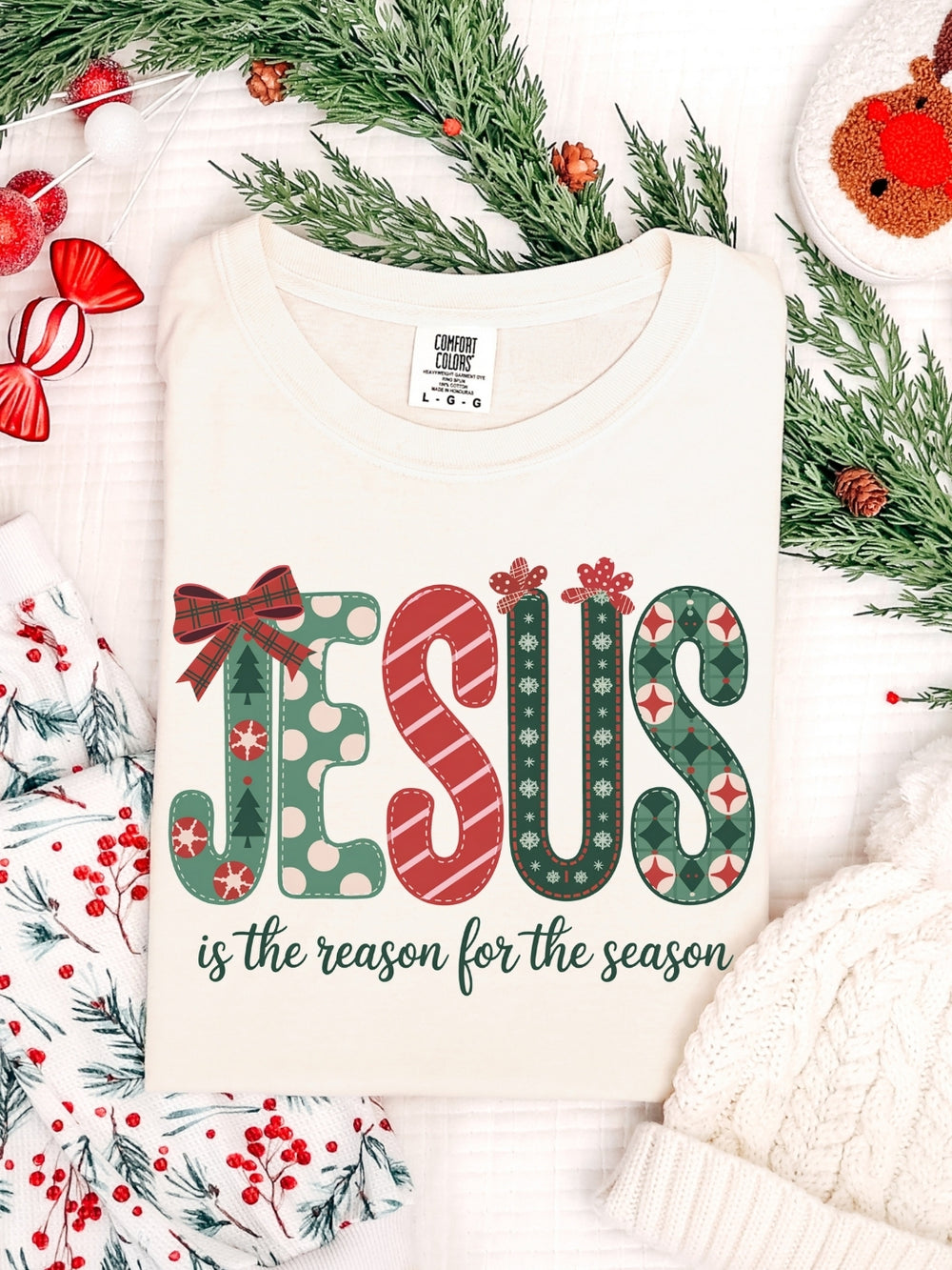Comfort Colors JESUS Faux Patchwork Christmas T-Shirt