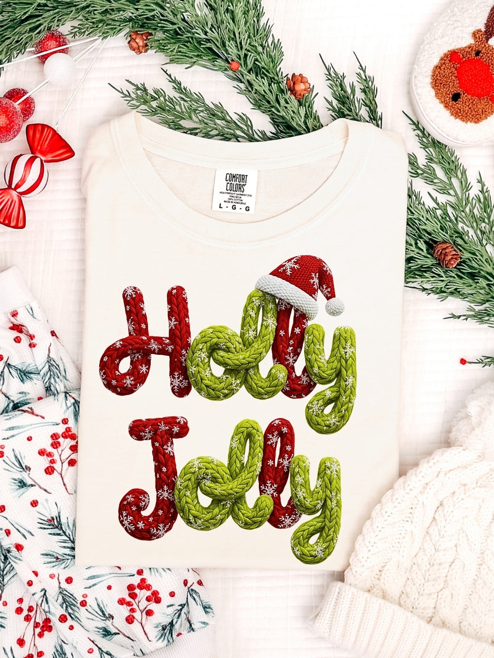 Comfort Colors Holly Jolly Faux Crochet Christmas T-Shirt