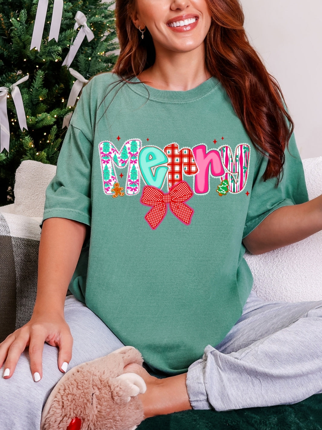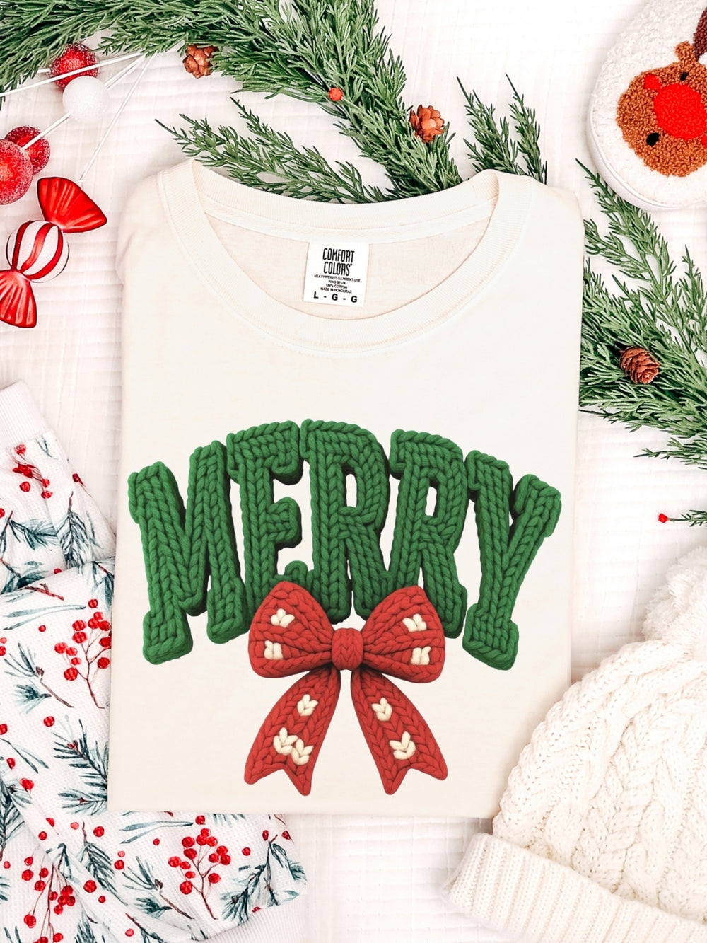 Comfort Colors Merry Faux Crochet Christmas T-Shirt