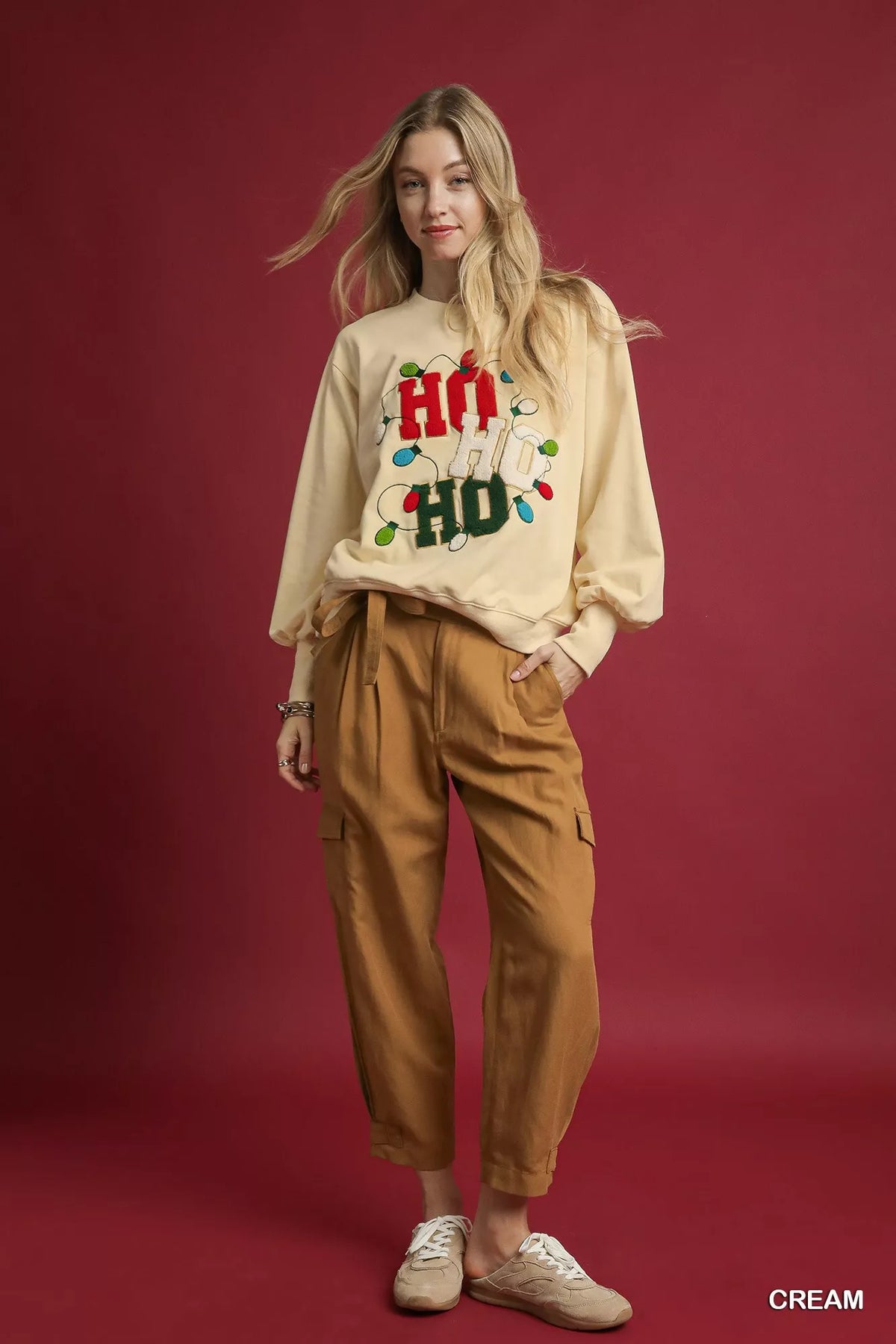 Umgee HO Applique French Terry Sweatshirt In Cream