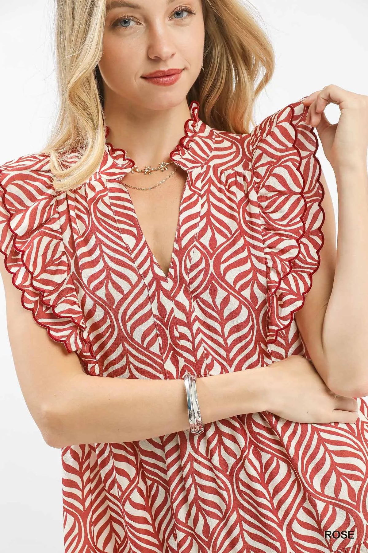 Elevate your style with the Key Features of this Leaf Print Tiered Midi Dress, including a tiered design for a dynamic silhouette and a V-neck with delicate ruffle trim for a touch of elegance. The short flutter sleeves with ruffle detail add a playful and feminine flair, while the scalloped sleeve edges provide a unique and eye-catching detail. Perfect for warmer days, this dress is not lined, offering a lightweight and breathable feel. Embrace the charm and sophistication of this dress by showcasing its key features and enjoy a chic and stylish look for any occasion. Stand out in the crowd with this stunning Leaf Print Tiered Midi Dress that captures attention with its stylish design and intricate details.
