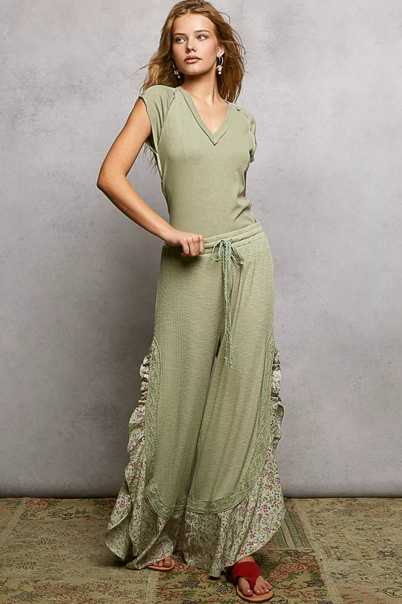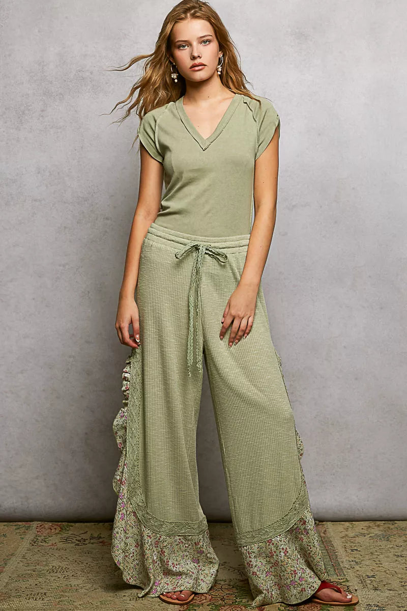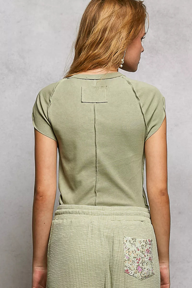 POL V-Neck Short Sleeve Washed T-Shirt with Outseam In Herb