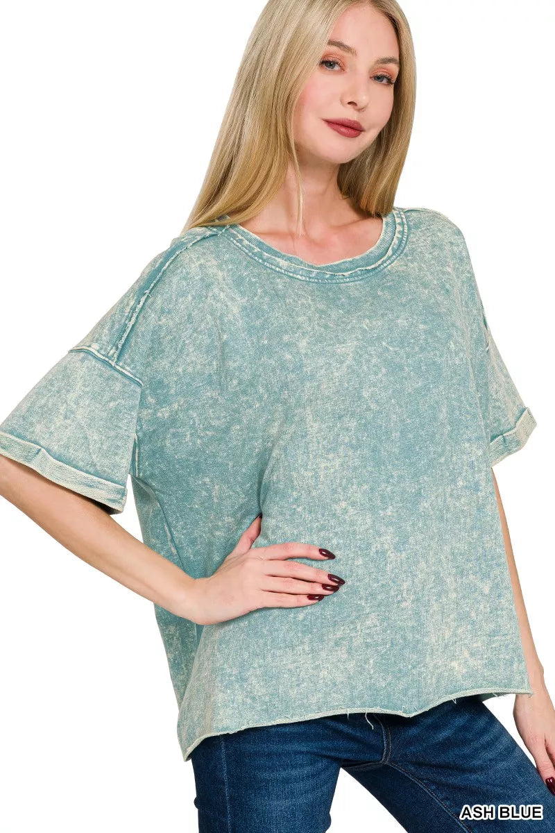 Zenana French Terry Acid Washed T-Shirt In Ash Blue